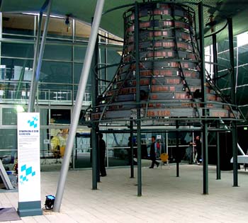 | ...sondern eine läutende Klanginstallation in Glockenform kann im Südgarten begangen werden. Erdacht und gemacht von dem Münchner Bildhauer Albert Hien.