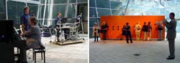 | | ... von Schwitters-Gedichten vermischen die vier Musiker aus Weimar zu "intuitiver Musik". Kammermusikalische Improvisationen werden in Echtzeit elektronisch verfremdet widergegeben. Das Ensemble für intuitive Musik Weimar sucht sich gerne ungewöhnliche Spielorte: Demnächst spielen sie 700 m unter Tage in einem Thüringer Kali-Schacht. Von 11.00 - 12.00 und 13.00 - 15.00 Uhr geben sie im Nordgarten unter dem Motto "Klangsprache - Sprachklänge" Kurzkonzerte.