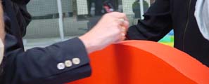 | Diese Installation spiegelt nicht nur die Farbigkeit des nördlichsten Bundeslandes wieder, es ist auch ein interaktives Projekt. Sie sind aufgefordert, daran teilzunehmen! Es sind schließlich die Menschen, die ein Land ausmachen und die mit ihnen in Kontakt treten! | |