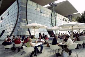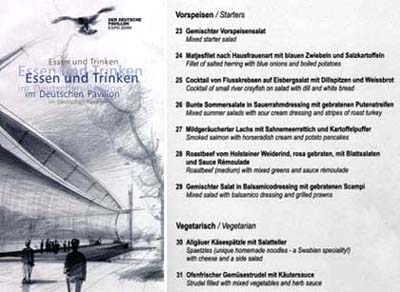 | Wussten Sie schon? An der der Plaza zugewandten Seite, links neben dem Haupteingang, befindet sich das Restaurant des Deutschen Pavillons. Dort können Sie von 9.00 - 23.00 (im SB-Bereich) bzw. von 11.30 bis 22.30 Uhr (im Service-Restaurant) die Vielfalt Deutscher Küche genießen. Regionale Spezialitäten während der Wochen der 16 Bundesländer runden das Angebot ab. | |