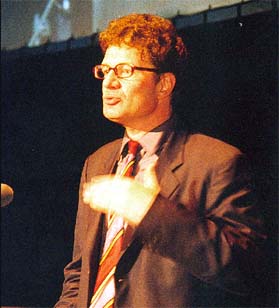 | Zum Abschluß der Video-Installation "WELCOME HOME" ( s. 2.10. ) wird der aus Funk und TV bekannte Journalist und Autor Roger Willemsen heute um 20.30 Uhr für eine Talk-Runde zum Thema "Die Deutschen und die Anderen" zu Gast im August-Everding-Saal sein. |  Interviewte schon internationale Prominente, noch bevor die Talkshow-Welle einsetzte: