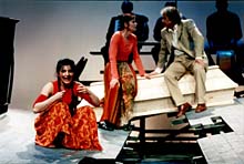 Vor die eigentliche Tragödie setzte der Regisseur Rahim Burhan einen Prolog: Die Bühne zeigte einen Albaner und einen Roma. Sie schlossen Blutsbrüderschaft, indem beide ihre selbst gezogenen Wunden gegeneinander preßten. In ihrem Pathos haftete der Szene etwas übertrieben Symbolisches an, darin offenbarte sich der Bruderkuss als Judaskuss.